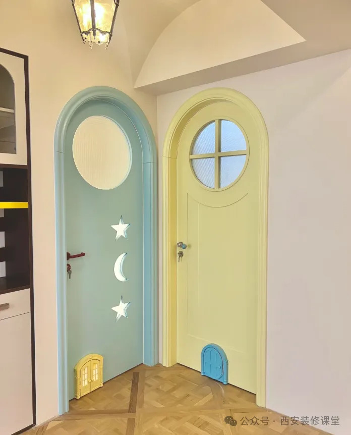 网友@烟雾弹:儿童房圆形花窗门:直接把童话里的门搬进家,每次开门都像开启魔法世界。