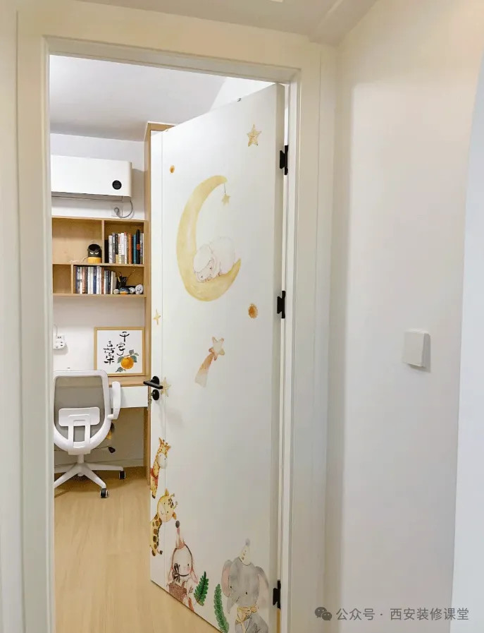网友@三界之上:儿童房卧室门超可爱的卡通图案,边缘过渡的很自然,看起来像画上去的一样,而且很好帖,可以反复撕开调整,也不留胶,看腻了也可以随时换掉写在后面:你会单独给儿童房做一个有创意的木门吗?可以文后留言探讨一下想法。