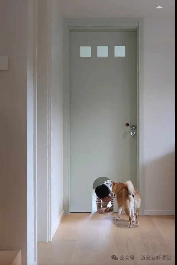 网友@rince:新家给狗狗留了一个门洞,留在了儿童房门上,小朋友和狗狗都很喜欢这个小门,小朋友和狗狗能玩好久 有毛孩子的家庭一起安排起来吧!