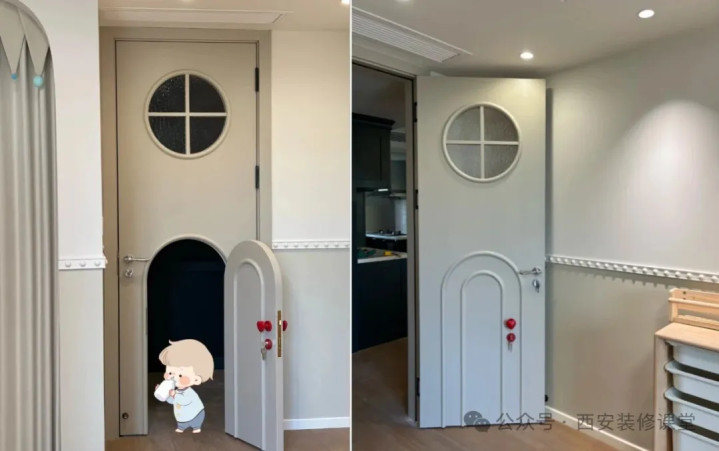 网友@可口可乐:门上再做个门,属于小朋友的专属。小朋友身高用我们成人高度,开门锁,对他们而言有点太高了。 专门开一个属于小朋友专属身高定制的有趣小门,小朋友喜欢的不得了。